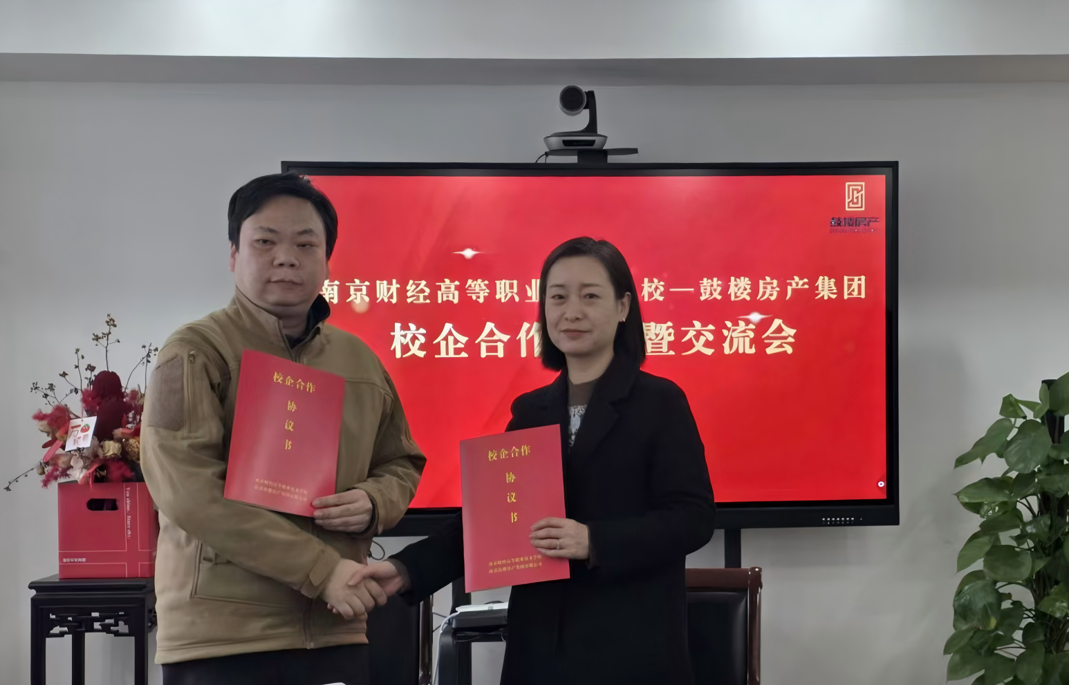 11月18日,现代服务系与南京鼓楼房产集团有限公司校企合作签约仪式在集团举行。学校副校长杨宇净带领现代服务系主任盛莲莲、招生就业培训部主任张勇、商英教研室主任周立娜出席活动。南京鼓楼房产集团党委副书记兼总经理邱非携集团党委委员兼副总经理雷明、综合部部长张茂婷、人力资源部部长方传会热情接待并参与座谈。