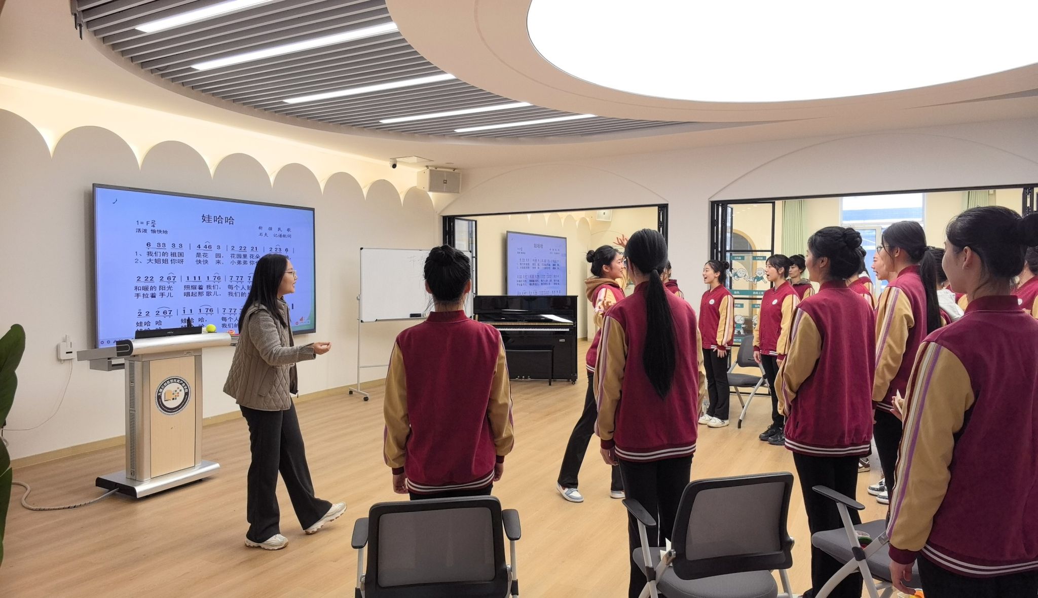 四节展示课统一遵循“感受—选择—表现”的教学路径,围绕“五感森活”形成创作共鸣,深度践行“音舞美跨学科融合”理念。不仅实现了音、舞、美学科的深度融通,还始终紧扣托育职业场景,将AI教学技术融入感知环节,有效增强了学生的艺术体验与专业素养。