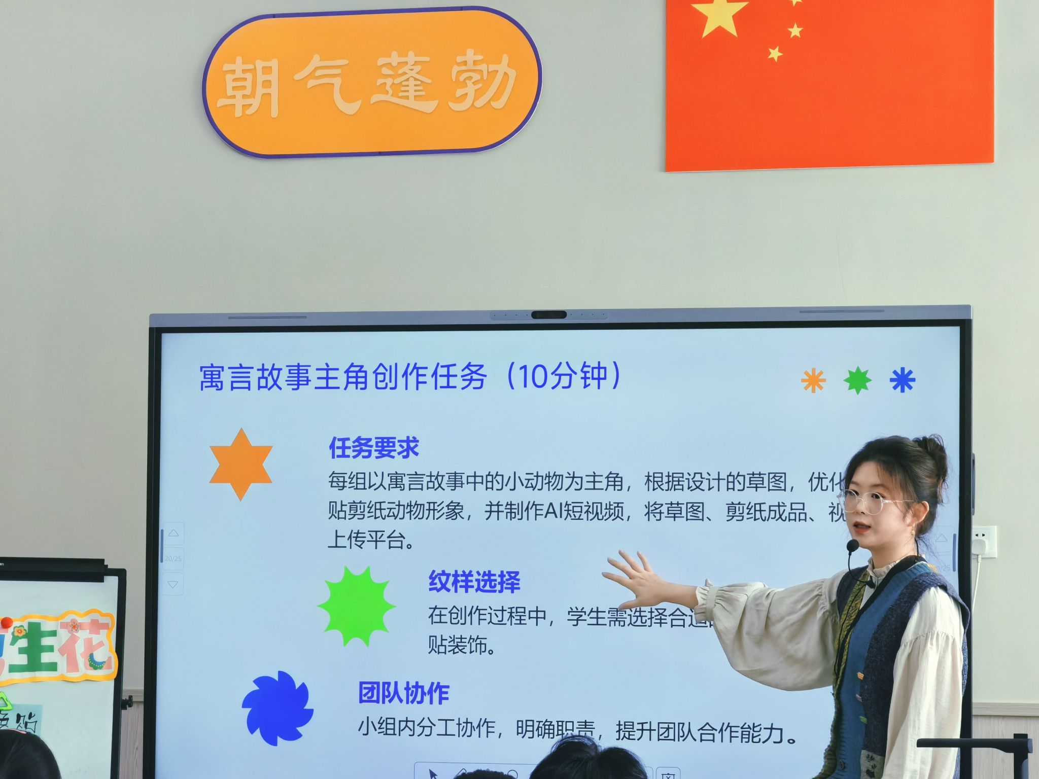 在教学中,四位教师均采用“先感知后创作”的教学逻辑。张玎雅老师通过触摸不同材质激发触觉感知,引导学生设计“触摸墙”;缪玥老师让学生感受民间艺术家的精神与自然形态,进而创作剪纸作品;陆菲老师从聆听自然声响入手,将节奏转化为幼儿音乐游戏;王巧雅老师则借助音乐与绘画引导身体感知,创编出融入托育场景的自然主题舞蹈。