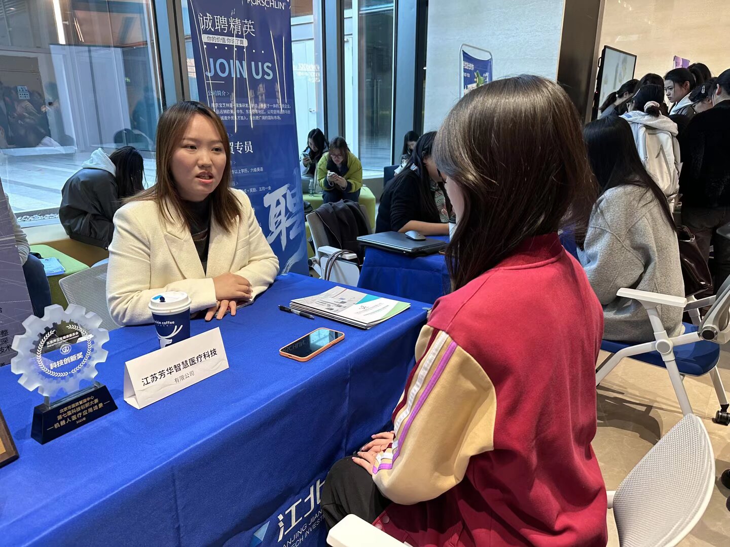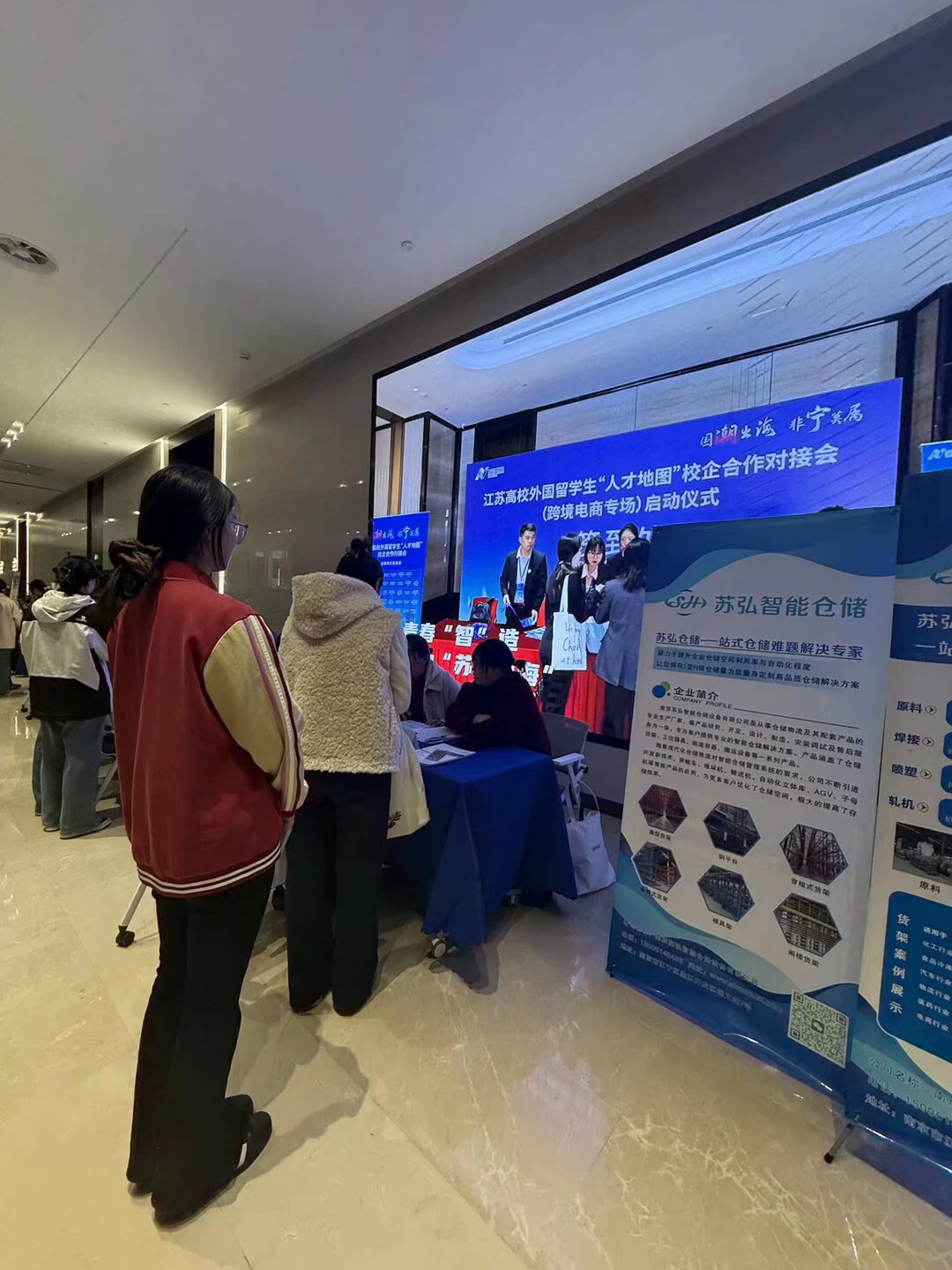 2025年11月26日下午,现代服务系组织2021级商务英语专业学生,前往南京江北新区芯科跨境电商产业园,参加了“第三届江北新区跨境电商人才专场双选会”。本次活动由江北新区芯科跨境电商产业园、南京市进出口商会与焦点科技股份有限公司(中国制造网)联合主办,汇聚了40余家优质跨境贸易企业,提供涵盖国际贸易、跨境电商运营、多语种客服、数字营销、国际物流等领域的实习与就业岗位200余个,精准对接外贸类人才培养与行业用人需求。